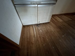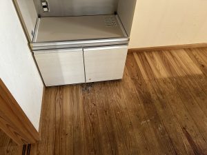 椋木の床が白く変色しており、リフォームされた方が良いともお伝えさせて頂きましたが、できる限りの原状回復でとのことで3日目で作業を行いました